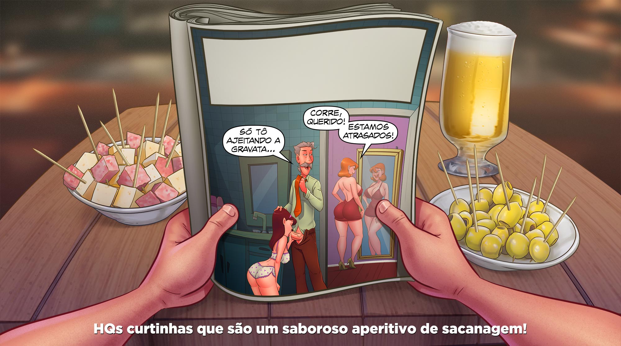 Carlinhos e seus amigos estão jogando videogame há horas... Dona Maria, prestativa como sempre, prepara um lanche caprichado e vai até a sala carregando a bandeja com sanduíches e refrigerantes. Mas parece que os rapazes querem comer outra coisa ainda mais apetitosa...